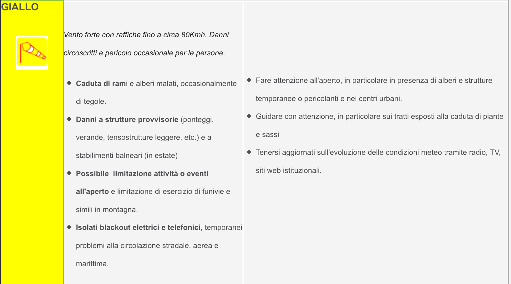 Sono in corso forti raffiche di vento si prega di attenersi alle regole di comportamento sotto riportate e previste nei casi di criticità GIALLA.