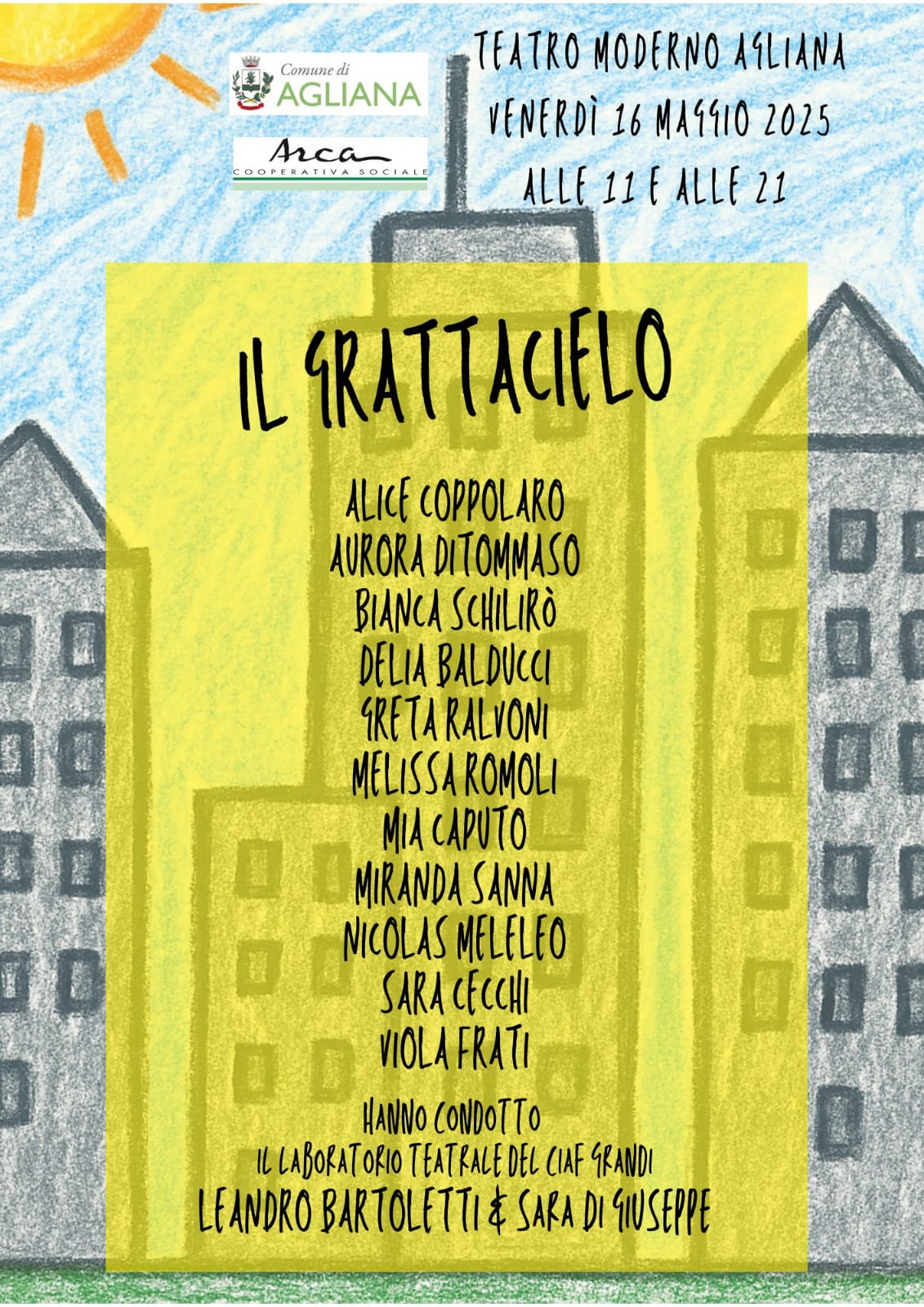 - venerdì 16 maggio alle ore 10.00 e alle ore 21.00 gli studenti delle scuole secondarie di primo grado con lo spettacolo "Il grattacielo";