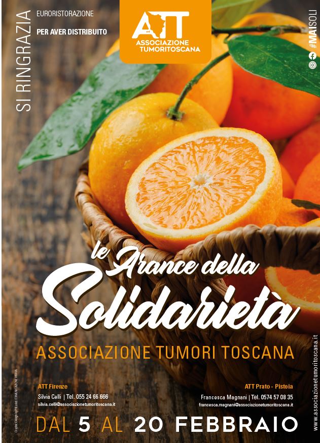 La ditta che gestisce la refezione scolastica EURORISTORAZIONE martedì 10 febbraio distribuirà le arance della salute offerte dall' ATT (Associazione tumori toscana) ai bambini dei nidi d'Infanzia comunali e agli alunni delle scuole dell'infanzia e primarie statali.