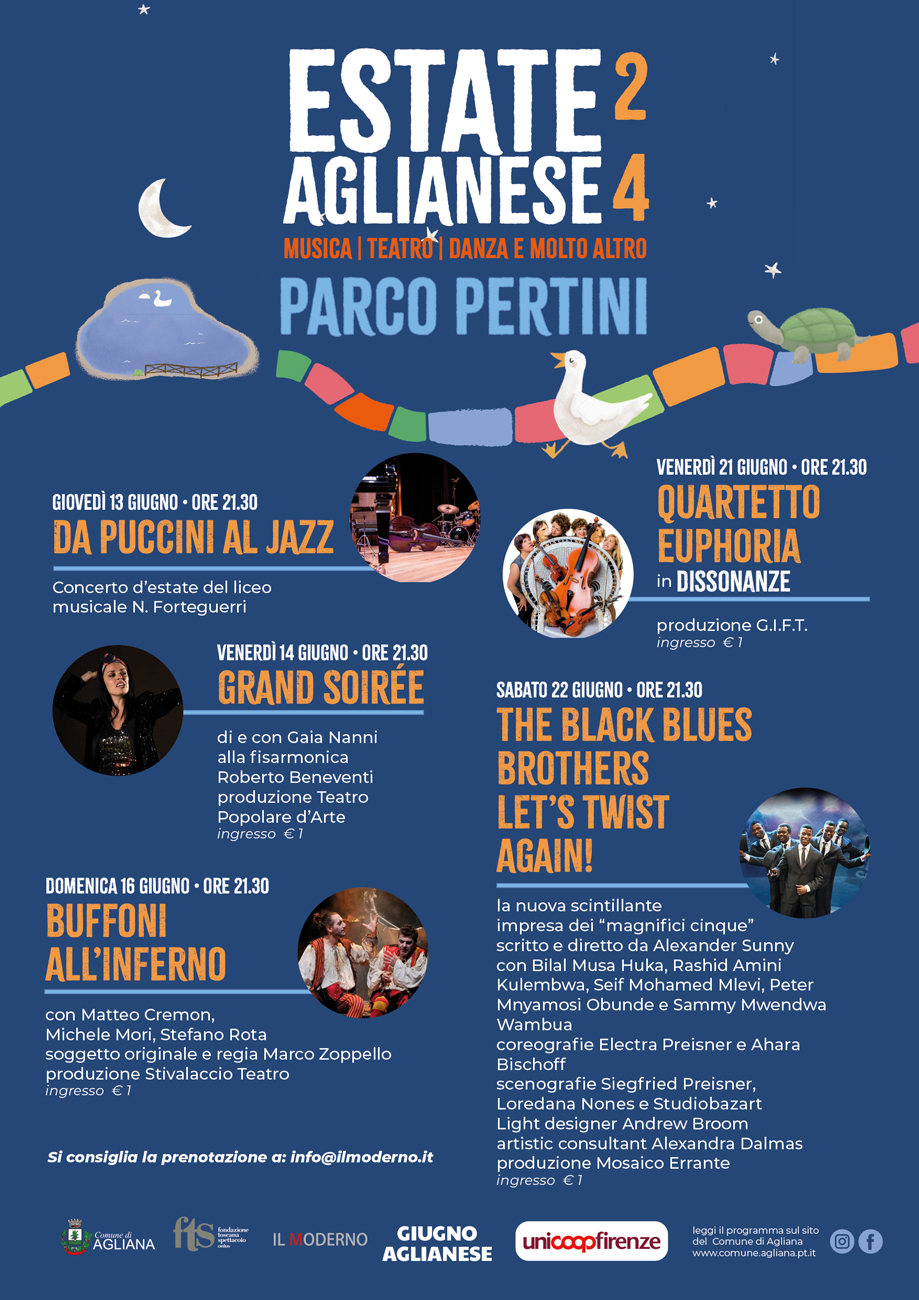 Cinque appuntamenti di qualità troveranno la loro sede al Parco Pertini, fra questi due protagonisti delle estati scorse che tanto sono state apprezzate dal pubblico, l'attrice Gaia Nanni e gli splendidi Black Blues Brothers con uno spettacolo tutto nuovo di circo acrobatico.