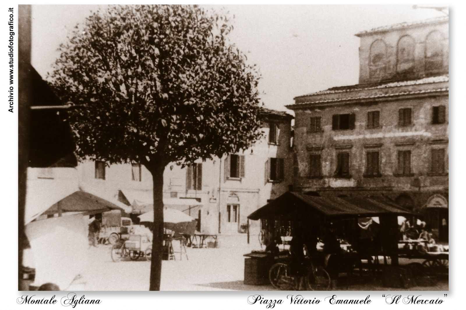 Piazza Vittorio Emanuele, attuale piazza A. Gramsci. La cartolina ci mostra uno scorcio della piazza in un giorno di mercato nella seconda metà degli anni ‘40.