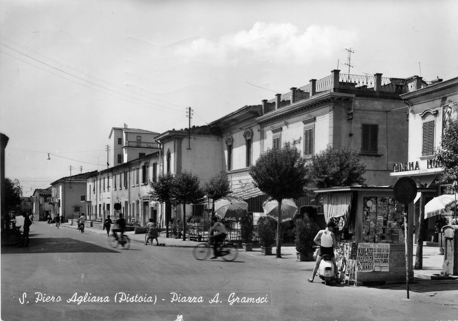Piazza A. Gramsci, veduta della piazza vista da via G. Matteotti, 1959-60. Da notare che davanti alla fontana c’è l’edicola Ciabatti.