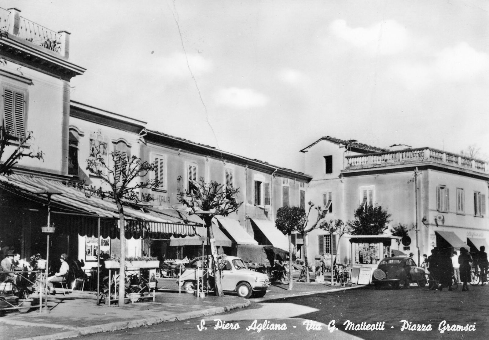 Piazza A. Gramsci, scorcio verso via G. Matteotti nel 1960; è lo stesso punto di vista della cartolina del 1930.
