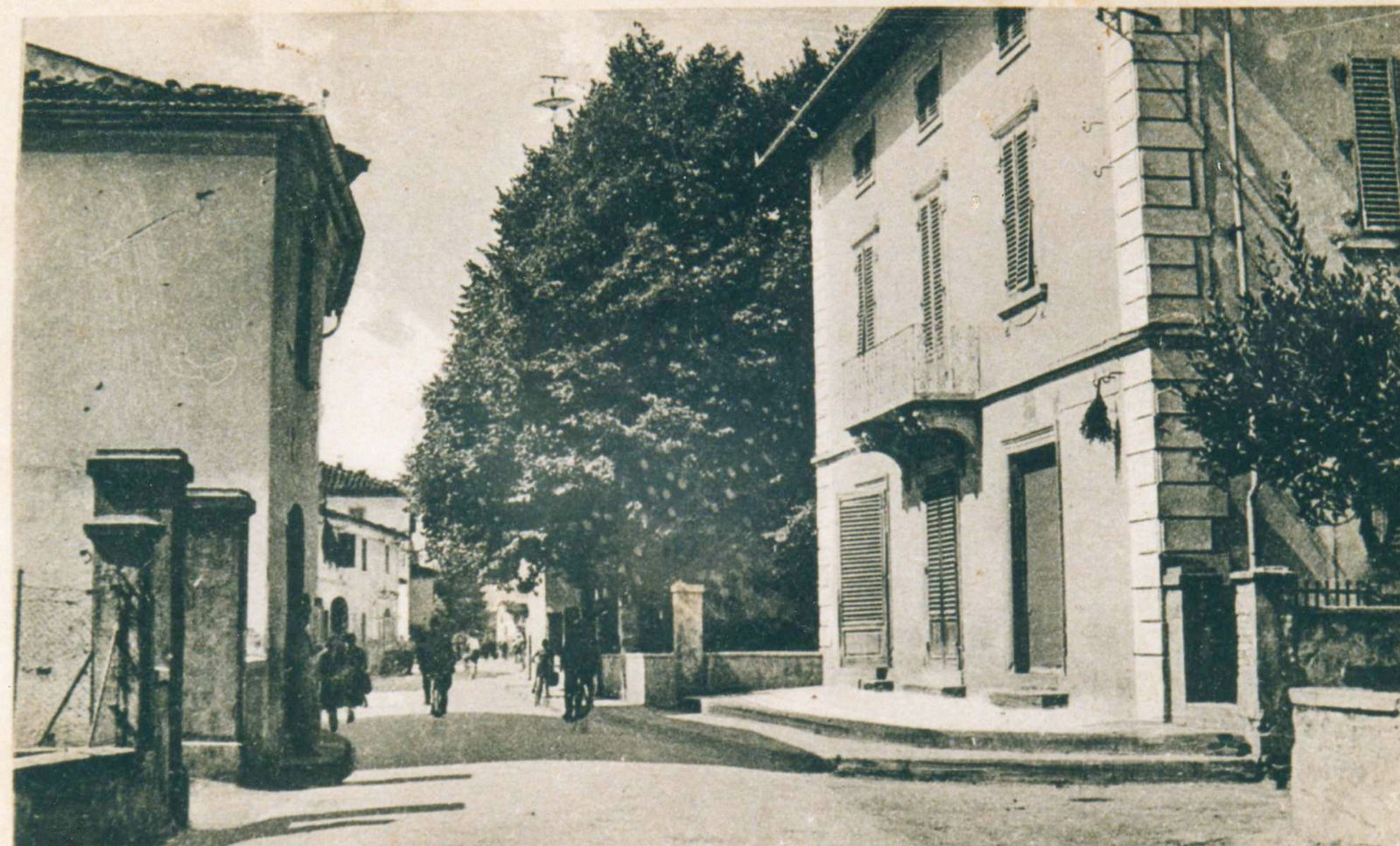 Viale Roma nel 1930, a sinistra la Trattoria Albergo Grassi, mentre a destra le case del "Castello di Pollo"